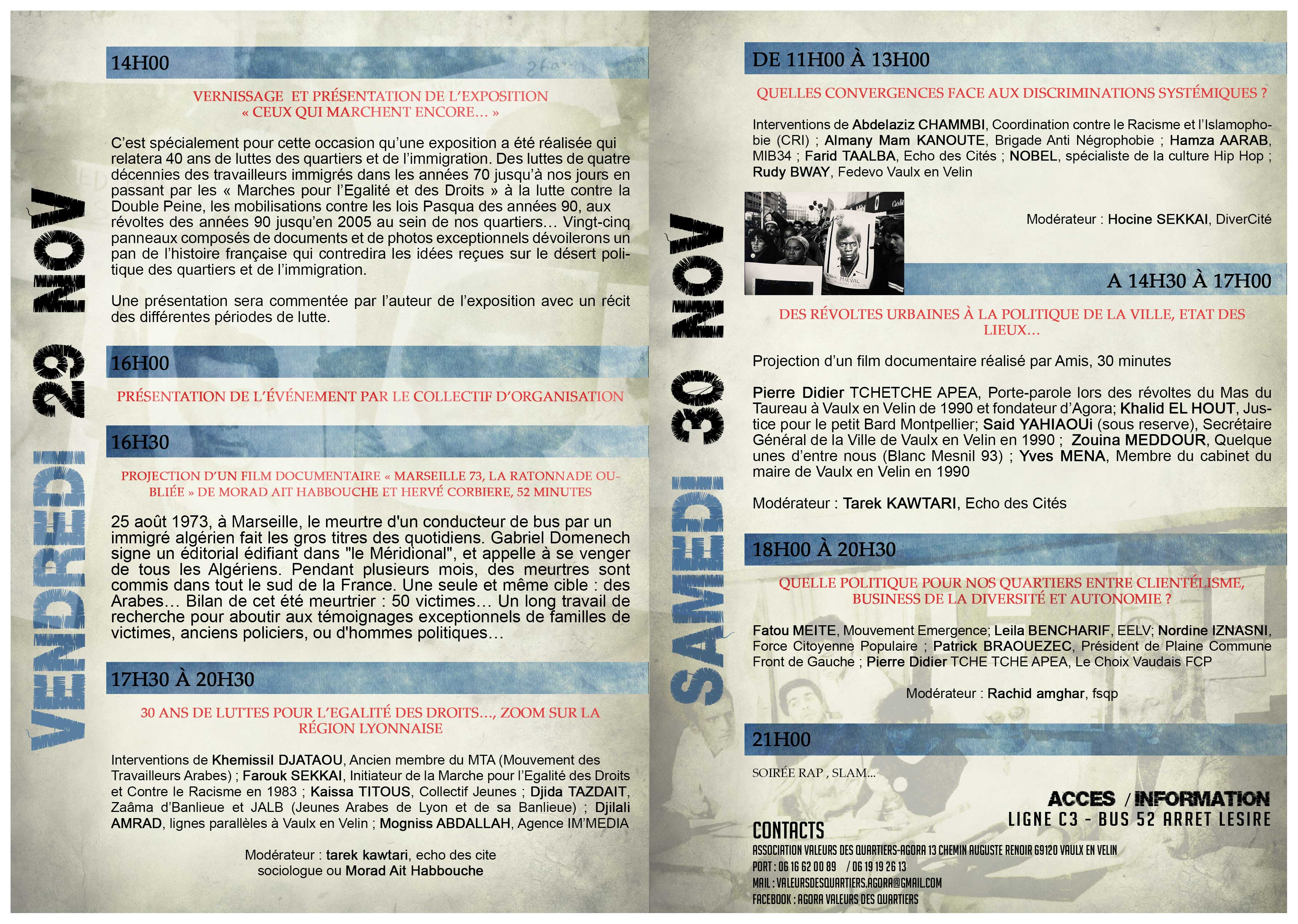 - Programme : Les 40 ans de la Marche pour l’égalité et contre le racisme : mémoires, héritages et actualités (19-21 octobre 2023)